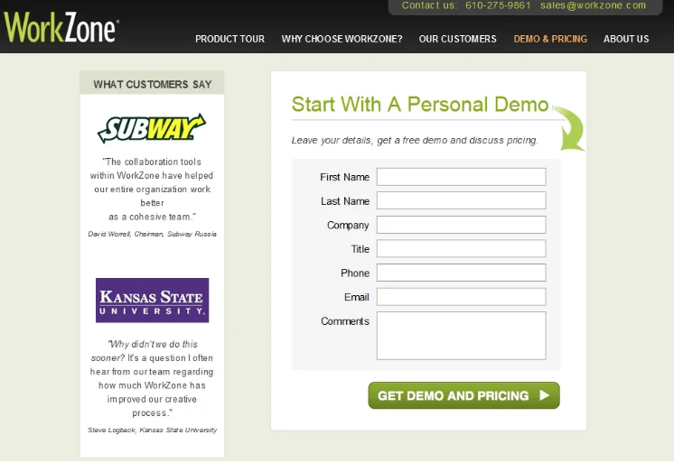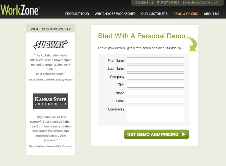 In the example below, WorkZone ran an A/B test of the colors in the logos comparing color logos with black and white logos. They found that the black and white variation outperformed the colored version and projected a 34% increase in form submissions