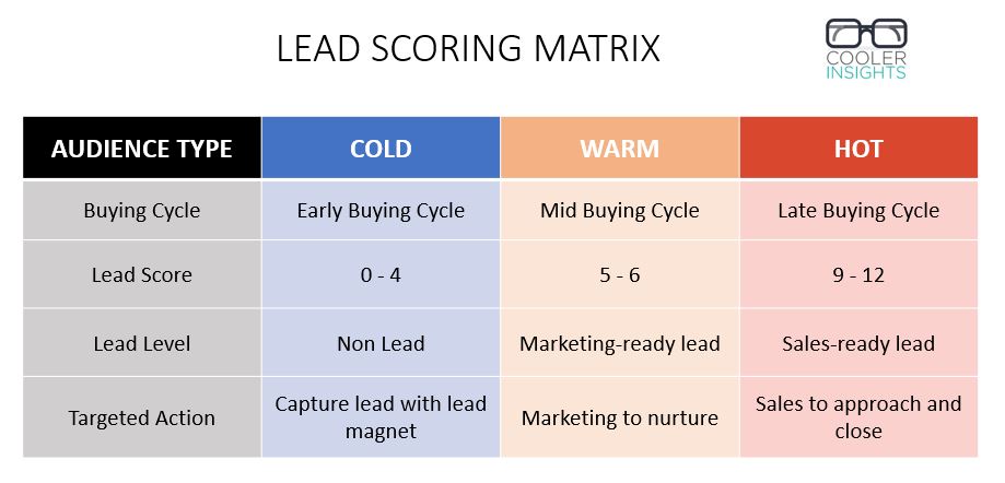 Revenue marketers use a lead qualification matrix like the one below to differentiate a good fit from a bad fit customer.