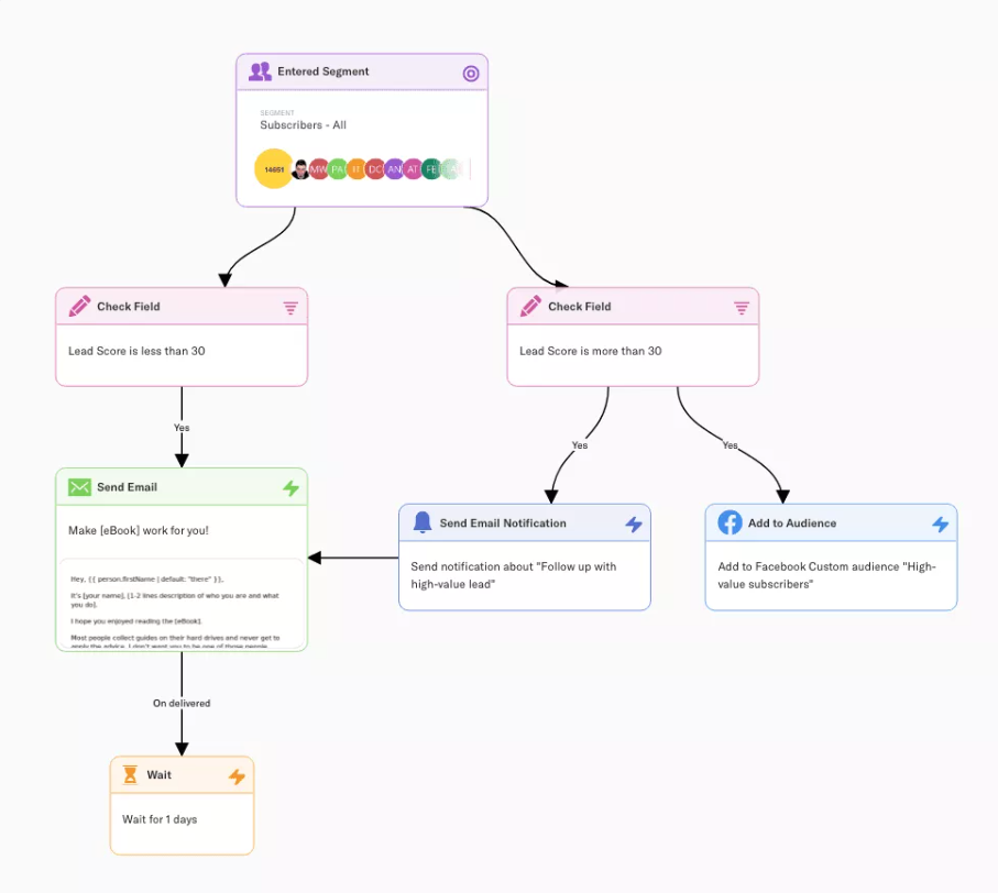 High-value prospects can be moved into high-priority follow-up from your sales reps or into a different sequence, while low-value prospects can be sent to a remarketing campaign to nurture those leads further.