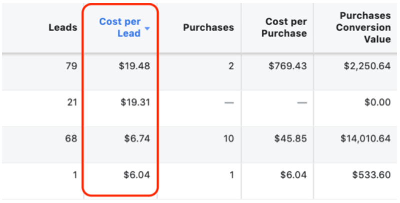 Most ad platforms like Facebook or Google will break down these metrics so you can see how much it costs to capture a single lead.
