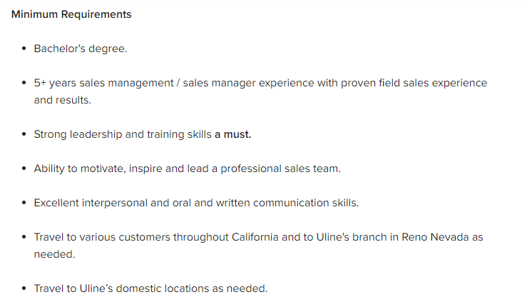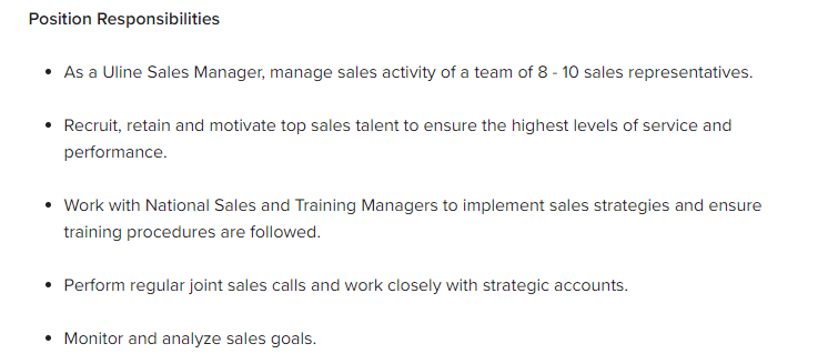 Monster.com is a go-to premium platform where professionals of many categories hire and look for a job. Although each position is slightly different, here is an example description for a sales operations position at Uline: